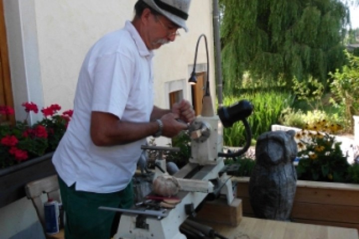 Jürgen Zschill bei Drechselarbeiten